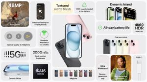 A sima iPhone modellek egy jó ideje vidámabb színekben pompáznak, ezek idén a rózsaszín, sárga, kék, zöld, és fekete. Emellett a legnagyobb változás a Dynamic Island, ami az iPhone 14 Pro-nál mutatkozott be tavaly, mostmár viszont az alap modelleknél is megkapjuk, amivel rengeteg hasznos és jópofa szoftveres funkció is párosul. A kijelző Super Retina XDR OLED, 6,1 collal az iPhone 15-nél, és 6,7 col az iPhone 15 Plus-nál. A csúcs fényerő 2 000 nit, ami kétszerese a tavalyi modellnek.